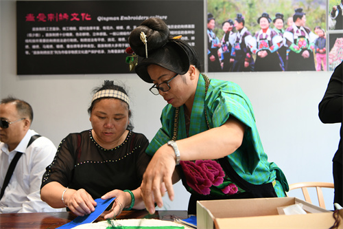 多年來,曼洞苗族織錦深受外國游客青睞;這也讓許多外國游客慕名前來青曼,只為一睹苗族織錦的神韻。