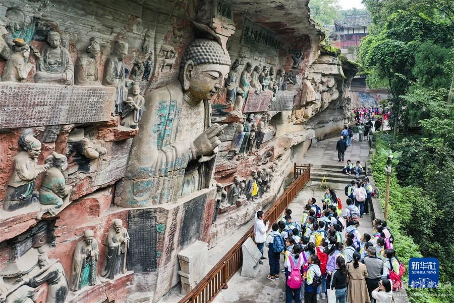 今年以來(lái),世界文化遺產(chǎn)大足石刻景區(qū)旅游市場(chǎng)持續(xù)回暖。1-10月,大足石刻景區(qū)接待游客量達(dá)100.29萬(wàn)人次,同比增長(zhǎng)358.7%,創(chuàng)同期歷史新高。 大足石刻位于重慶市大足區(qū)境內(nèi),始建于初唐,至兩宋達(dá)到鼎盛。其5萬(wàn)余尊石窟造像代表了公元9世紀(jì)至13世紀(jì)世界石窟藝術(shù)的最高水平,被譽(yù)為世界石窟藝術(shù)史上最后的豐碑。1999年,大足石刻被列入世界遺產(chǎn)名錄。 新華社記者王全超攝