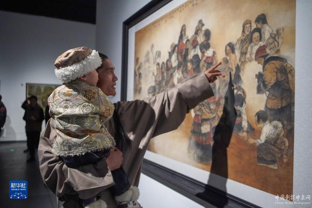 11月15日,觀眾在西藏美術(shù)館參觀畫作《草原紀(jì)事》?!⌒氯A社記者 邵澤東 攝