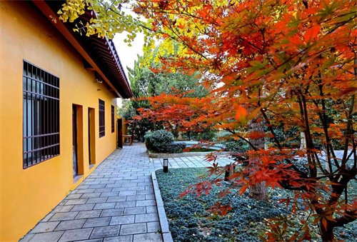 圣安寺內種有很多的櫻花樹,到了秋天,櫻花樹的葉逐漸變黃,寺院一下就被染上了金黃色。雖然櫻樹葉沒有楓葉那樣的紅,但金黃色也是好看的,特別是與寺院琉璃殿宇同框而展現時,黃色的櫻花葉與黃色的琉璃瓦互相輝映增色,形成了金色的世界,意境自然而生,引得騷人墨客打卡自拍。這兩年古裝興起,每天好多著古裝的小女孩走進寺院,整合著傳統(tǒng)的服裝與傳統(tǒng)的建筑之間審美視角,發(fā)往朋友圈,讓朋友分享圣安寺的美景。