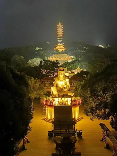 若游客騷人真正要感受秋風秋色,還得登上圣安寺塔。塔九層,層層風光無限,層層都能領略岳陽全城美景。移步塔外,依塔遠眺,一幅洞庭秋色圖豁然眼前,遠眺極目處湖天一色,若有若空,無有差別。洞庭湖中,君山宛若秋景圖中的一葉漁舟,飄泊在秋風里。而岳陽樓隱隱約約在秋日的照射下發(fā)著金光。有時候看去也像一枚發(fā)黃的秋葉,跌落在高樓大廈的腳下,似乎不再有進亦憂退亦憂的激情與胸懷。“欲窮千里目,更上一層樓”,其實,佛塔一般為七層,佛教的“七”是代表圓滿的意思,而圣安寺塔建成了九層,含意為“九五之尊”,這也許就是宗教中國化的結果吧!圣安寺塔建在楞伽山頂,秋日登塔,會有微微的涼意,爬到塔高處,也會有“風蕭蕭兮易水寒”的味道。