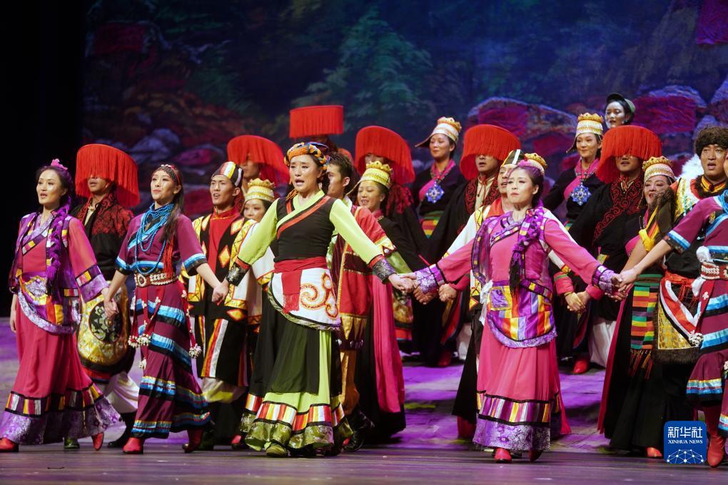 由西藏自治區(qū)歌舞團(tuán)演繹的民族歌舞劇《天邊格?;ā吠ㄟ^民族舞和交響樂結(jié)合的形式,展現(xiàn)了西藏普通一家父女兩代人在惡劣自然條件下默默扎根祖國邊陲,守邊衛(wèi)國的感人故事。