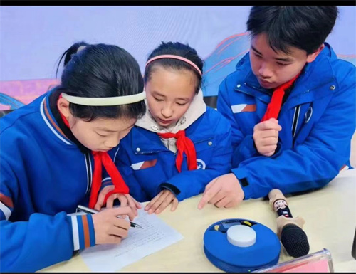 心有靈犀環(huán)節(jié)為“你說我猜”題,每支參賽隊1人比劃1人猜,在規(guī)定時間內(nèi)每答對1題加10分,答錯不扣分。在前四輪總分居前四名的八(1)班、七(1)班、八(4)班、七(4)班、八(3)班成功晉級。