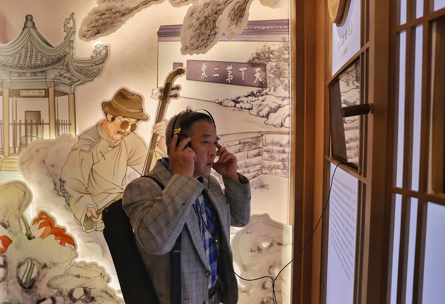 12月9日,崇安寺阿炳故居,一名游客用耳機收聽《二泉映月》的錄音。中國日報記者 姜東 攝