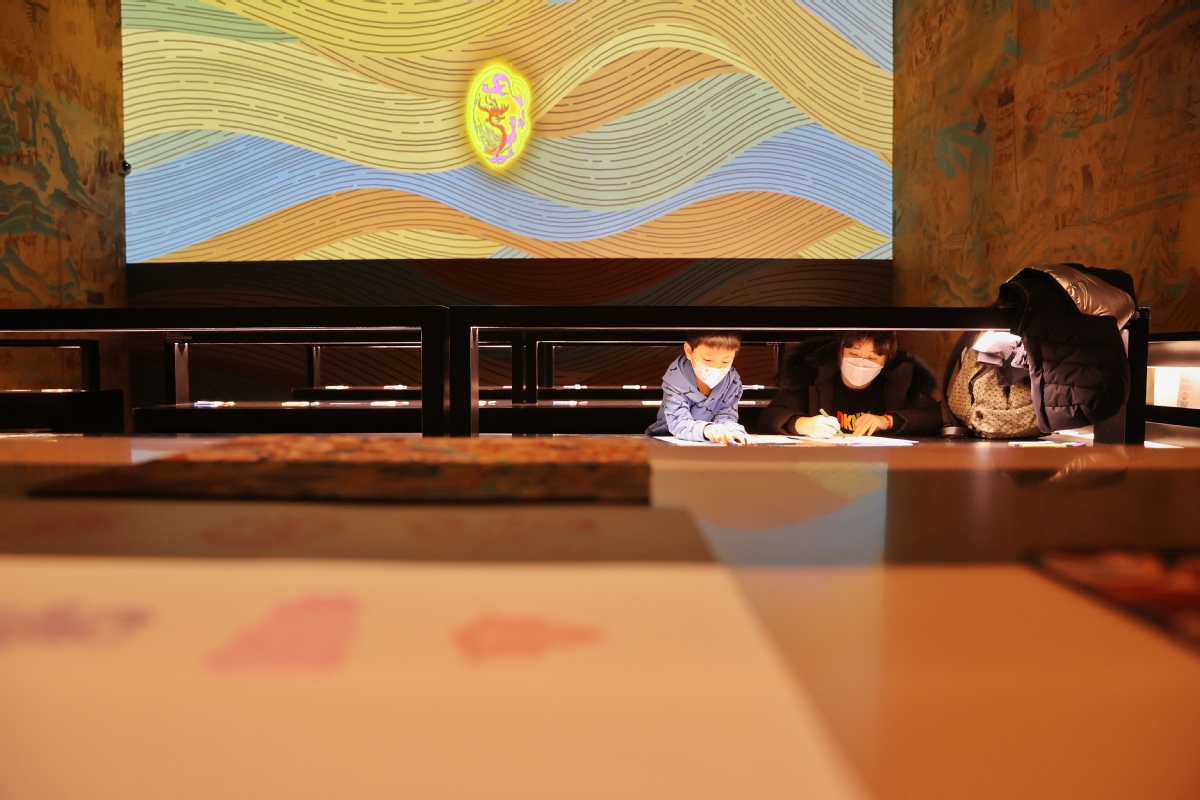 12月12日,北京,觀眾在中國國家博物館參觀“華彩萬象——石窟藝術(shù)沉浸體驗”。中國日報記者 姜東 攝