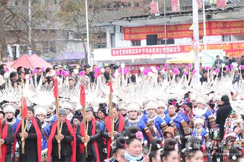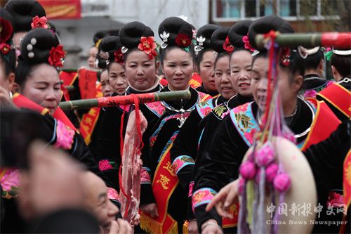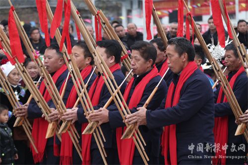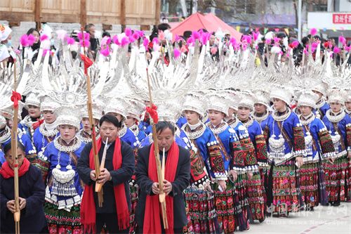 腳高苗寨隸屬于凱里市三棵樹鎮(zhèn),是此次過鼓藏節(jié)的苗族村寨之一,全寨百姓對13年一次的鼓藏節(jié)非常重視,許多在外地工作的村民早早就趕回了家,提前做好相關(guān)籌備工作,節(jié)日期間,除開門迎客、祭祀先祖、跳蘆笙等傳統(tǒng)的民俗活動以外,還安排了各種現(xiàn)代打籃球、唱歌、拔河等體育競賽活動。