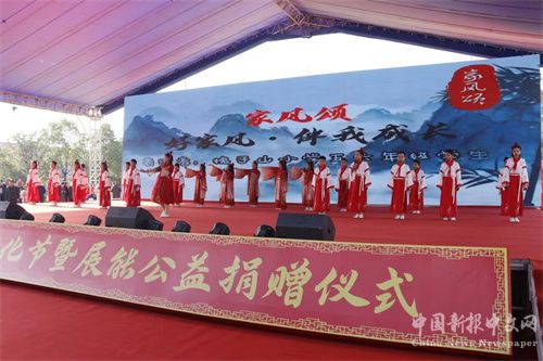 活動(dòng)現(xiàn)場(chǎng)為東莞市展能公益捐建的流光嶺中心學(xué)校跑道落成剪彩。流光嶺鎮(zhèn)的鄉(xiāng)賢、師生和展能公益志愿者奉獻(xiàn)了精彩的文藝演出,大家用歌舞、經(jīng)典誦讀等豐富多彩的藝術(shù)形式,謳歌忠孝美德,傳承忠孝文化,表達(dá)愛(ài)黨愛(ài)國(guó)愛(ài)崗愛(ài)家的信心和決心。