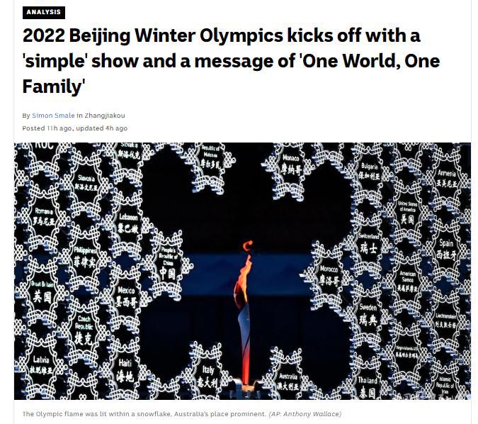 澳大利亞廣播公司認(rèn)為,令人印象深刻的是,此次開(kāi)幕式將 “世界一家”的思想貫穿始終,促使人們?nèi)リP(guān)注和思考奧運(yùn)會(huì)如何讓人們團(tuán)結(jié)在一起,這也正是奧林匹克運(yùn)動(dòng)的使命。
