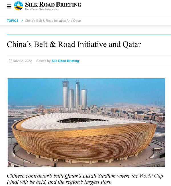 絲綢之路新聞網(wǎng)11月22日?qǐng)?bào)道稱,正在舉辦世界杯決賽的卡塔爾2014年加入“一帶一路”倡議,并將卡塔爾“2030國(guó)家愿景”建設(shè)與中國(guó)的“一帶一路”倡議對(duì)接。協(xié)同戰(zhàn)略為雙方帶來(lái)了新的機(jī)遇,“一帶一路”倡議為多哈經(jīng)濟(jì)轉(zhuǎn)型提供了新的動(dòng)力。