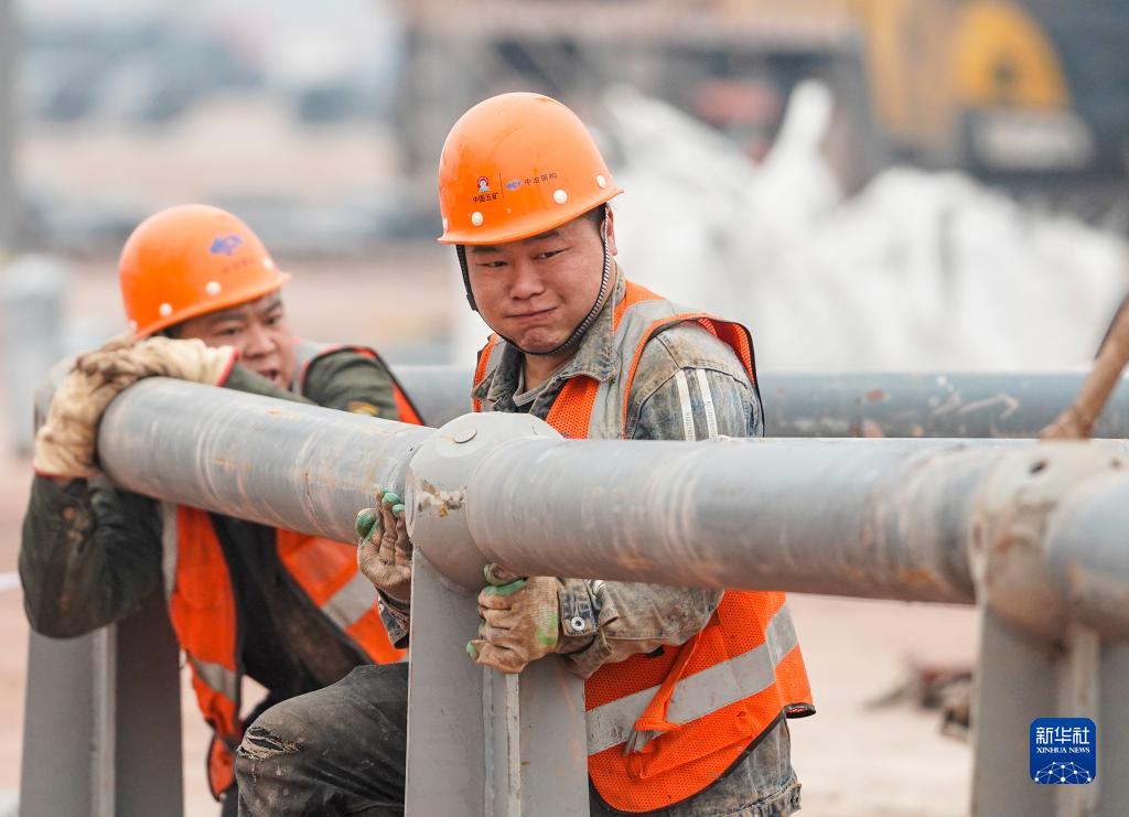 1月23日,工人在重慶兩江新區(qū)新能源汽車產(chǎn)業(yè)園基礎(chǔ)設(shè)施配套項(xiàng)目現(xiàn)場進(jìn)行鋼結(jié)構(gòu)材料拼裝作業(yè)。新華社記者 劉潺 攝