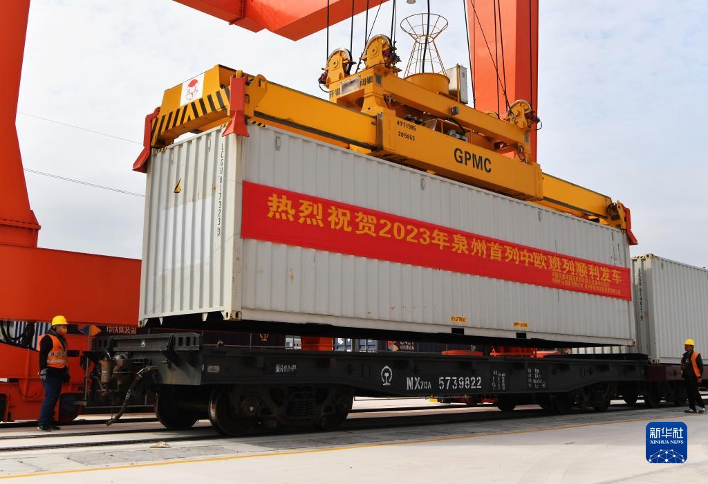 當(dāng)日,滿載著55個集裝箱的中歐班列,從位于福建泉州惠安縣的興泉鐵路黃塘站駛出。這是泉州今年開出的首趟中歐班列,也是興泉鐵路開通后的首趟泉州中歐班列。據(jù)了解,此次班列裝載產(chǎn)品主要來自泉州進(jìn)出口企業(yè),貨重601.4噸,貨值約262.5萬美元。