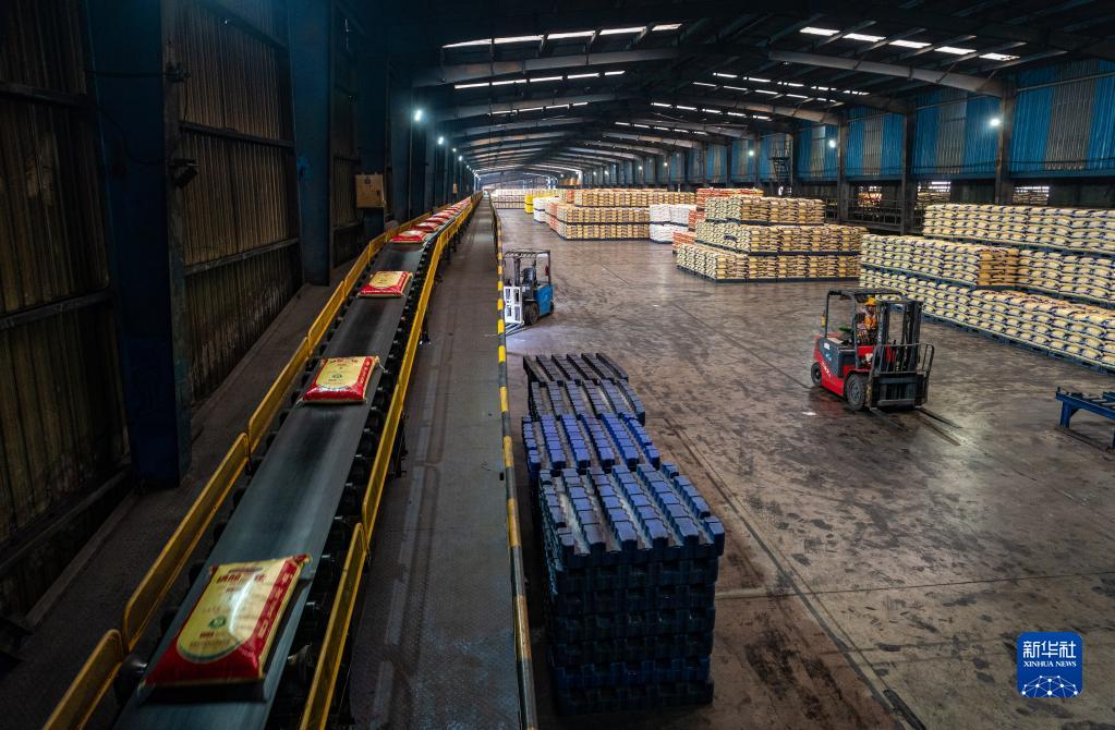 工人在位于云南省昆明安寧市的云天化集團天安化工磷肥制造中心生產(chǎn)線上進行運輸作業(yè)(2月8日攝)。新華社記者 江文耀 攝