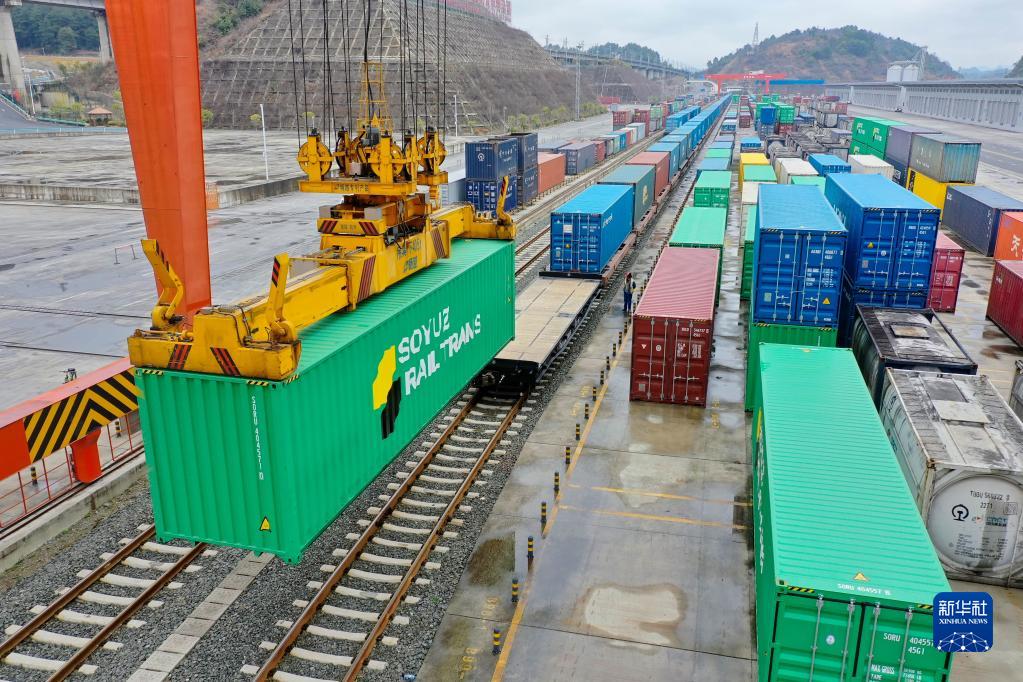 浙江,鐵路義烏西站,卡車有序進出,龍門吊將一個個集裝箱裝上“義新歐”中歐班列。滿載貨物的“鋼鐵駝隊”蓄勢待發(fā),為中外經(jīng)貿(mào)往來注入強勁活力。
