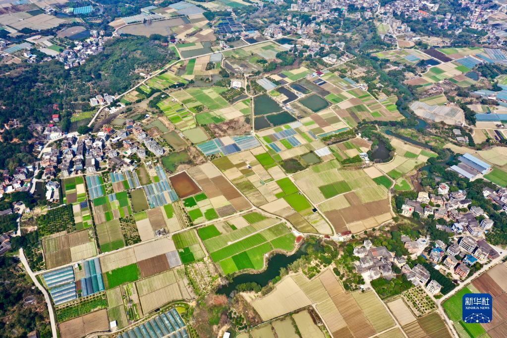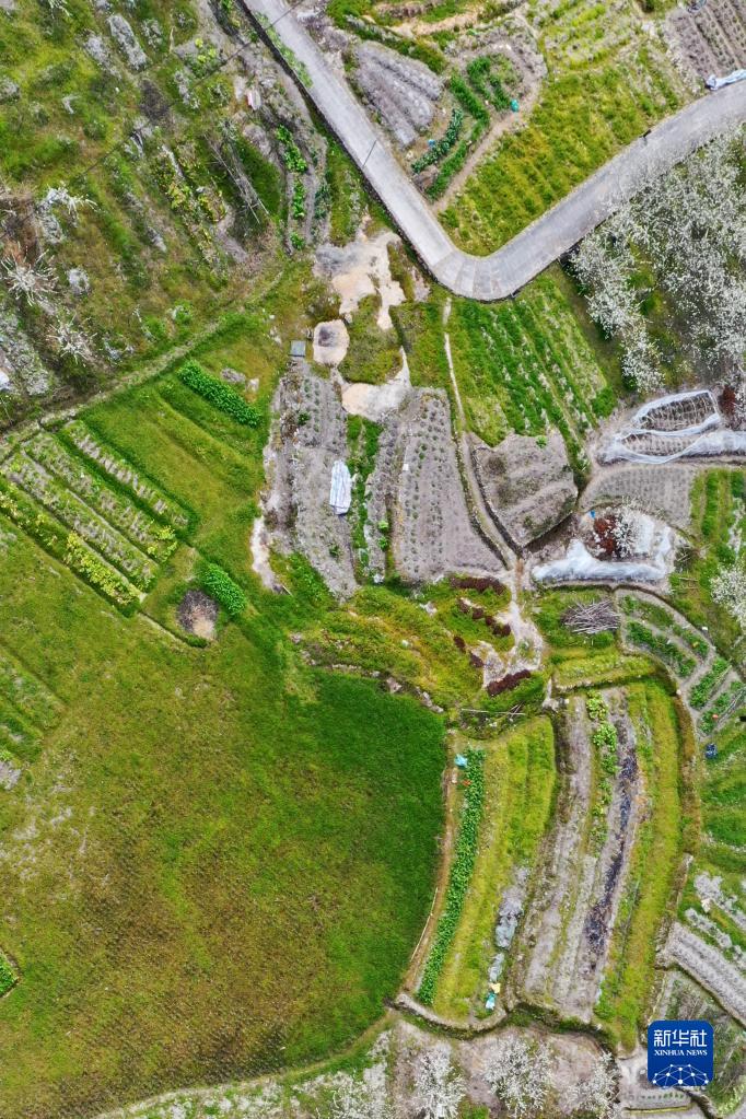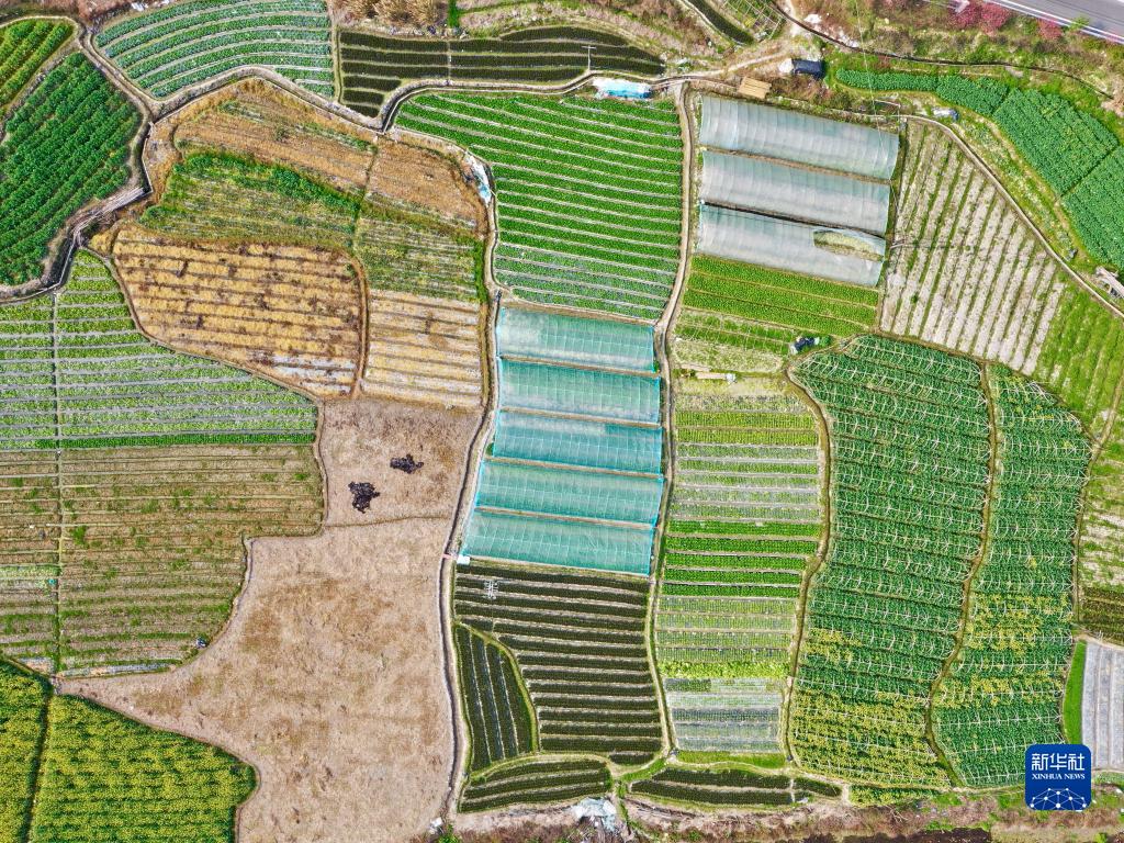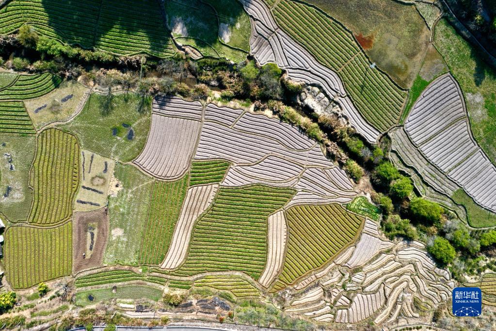 春耕時節(jié),在福建省福州市鄉(xiāng)村山嶺間,一塊塊形狀各異、五彩斑斕的田地猶如大地上的拼圖,呈現(xiàn)別樣的春耕畫卷。