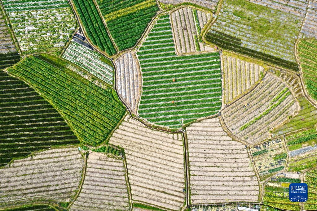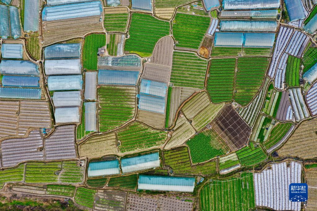 2月26日拍攝的福州市閩侯縣南通鎮(zhèn)蔬菜基地景觀(無人機照片)。