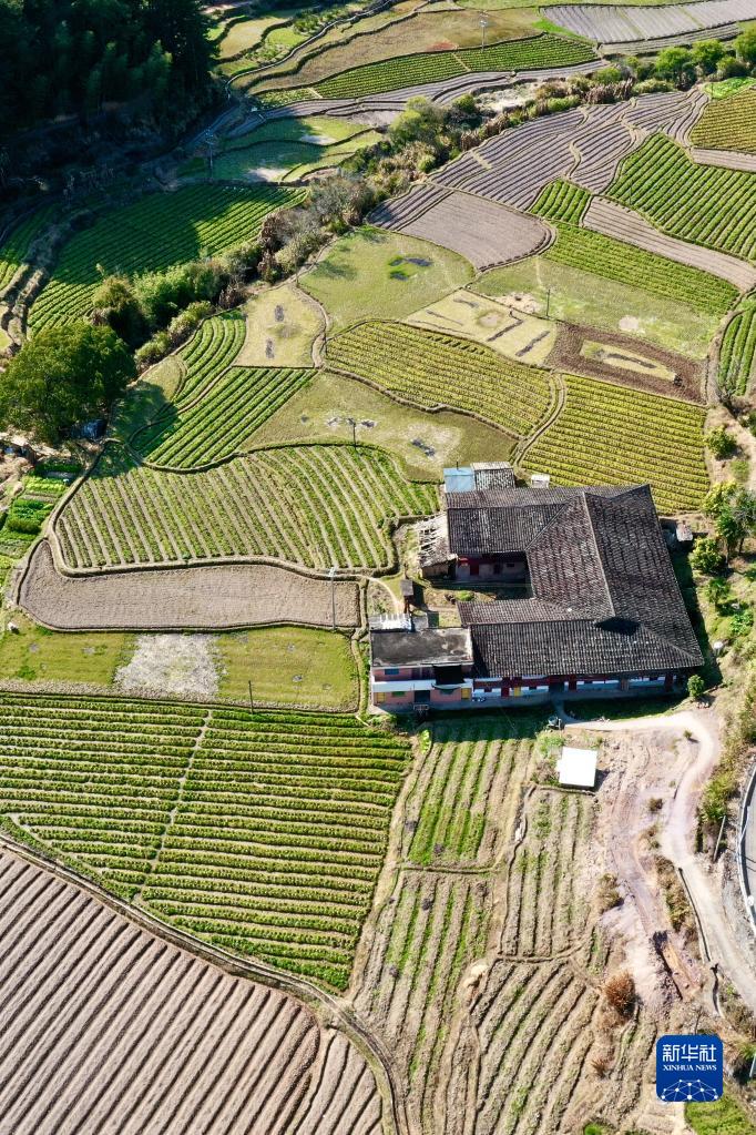 2月23日拍攝的福州市永泰縣白云鄉(xiāng)白云村田野景觀(無人機照片)。