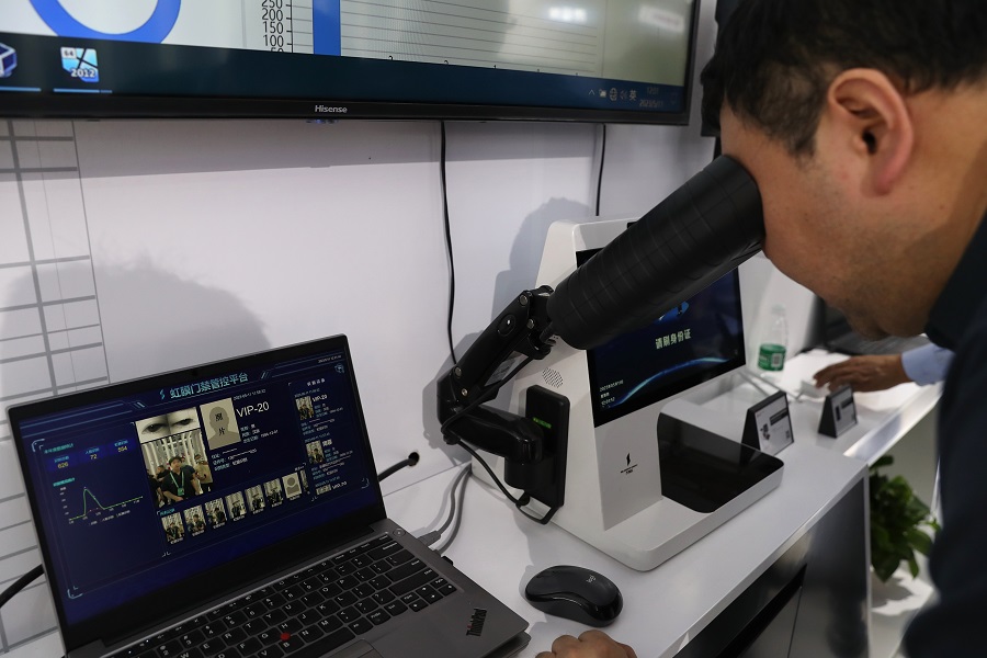 5月11日,參展商展示萬里紅虹膜門禁管控平臺。中國日報記者 王壯飛 攝
