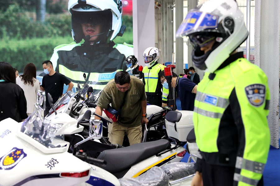 5月11日,觀眾在警博會參觀警用摩托車。中國日報記者 王壯飛 攝