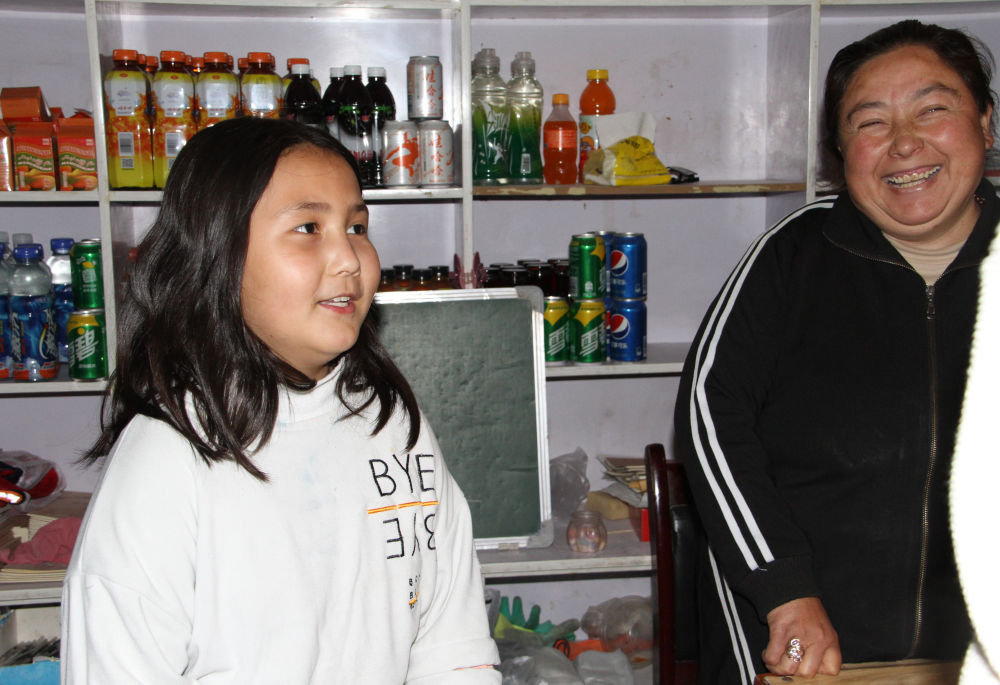 帕提瑪·麥麥提熱杰普(左)和她的媽媽在自家的超市里(5月27日攝)。新華社記者 劉紅霞 攝