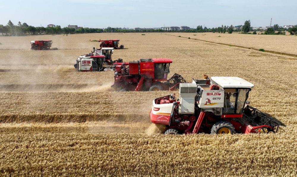 搶收壓力較大的安徽從山東、江蘇等地引入機(jī)具,“歇人不歇機(jī)”24小時(shí)搶收;由村干部、老黨員組成的應(yīng)急搶收服務(wù)隊(duì)活躍在麥?zhǔn)找痪€,機(jī)動(dòng)調(diào)配農(nóng)機(jī)保障及時(shí)搶收。麥?zhǔn)崭叻迤?,安徽日均投入收割機(jī)超過12萬臺(tái),其中6月3日收獲小麥997萬畝,創(chuàng)歷史新高。