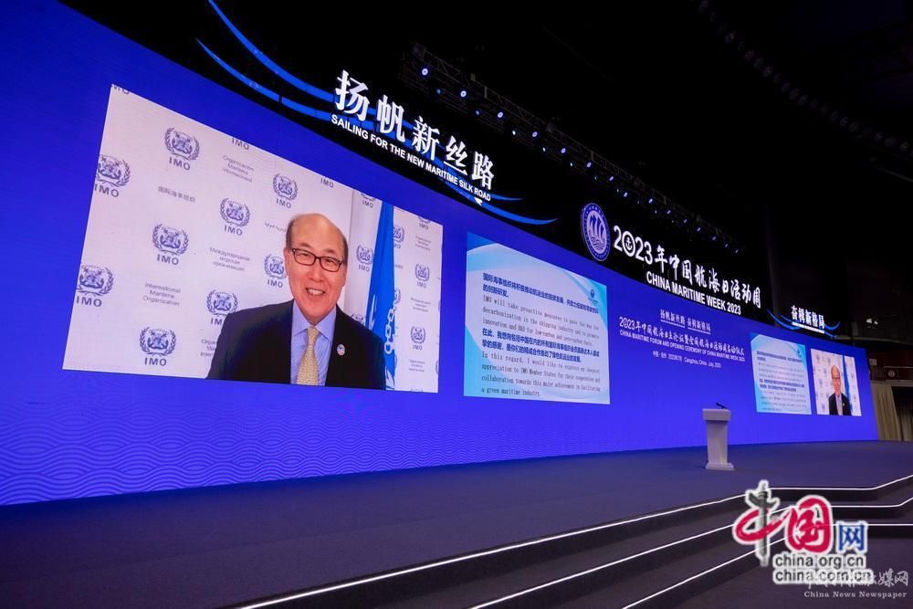 國(guó)際海事組織秘書(shū)長(zhǎng)林基澤視頻致辭。中國(guó)網(wǎng)記者 鄭亮攝