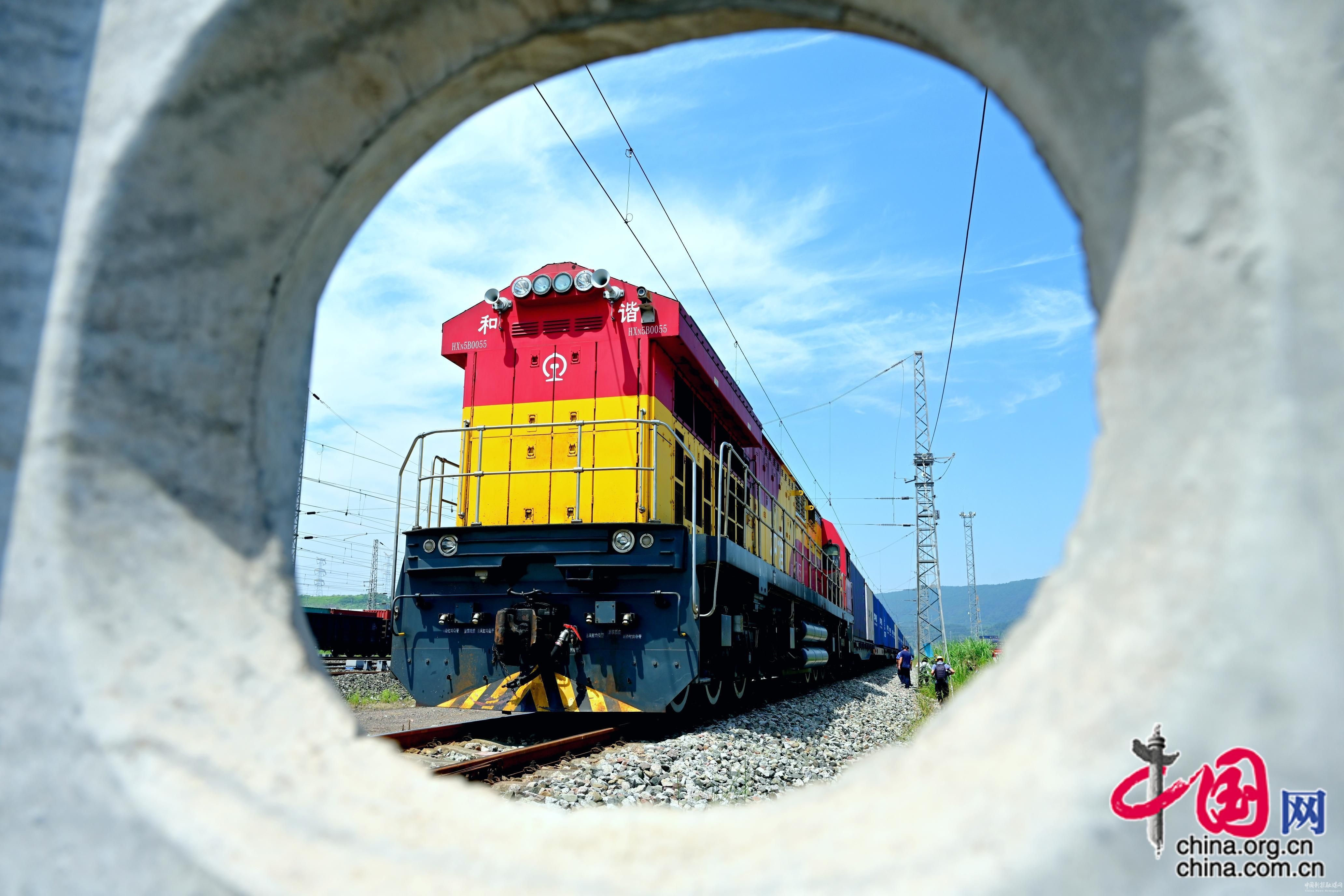 7月18日,滿載貨物的西部陸海新通道班列在魚嘴站正準備發(fā)車。中國網發(fā) 雷釗/攝