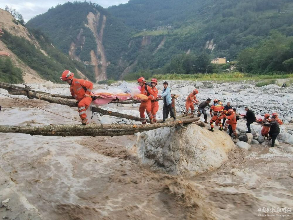 ↑2022年9月5日,武警四川總隊(duì)機(jī)動(dòng)第二支隊(duì)官兵在甘孜州瀘定縣磨西鎮(zhèn)磨子溝村搭建臨時(shí)木橋轉(zhuǎn)移被困群眾(手機(jī)照片)。新華社發(fā)(洪福樂 攝)