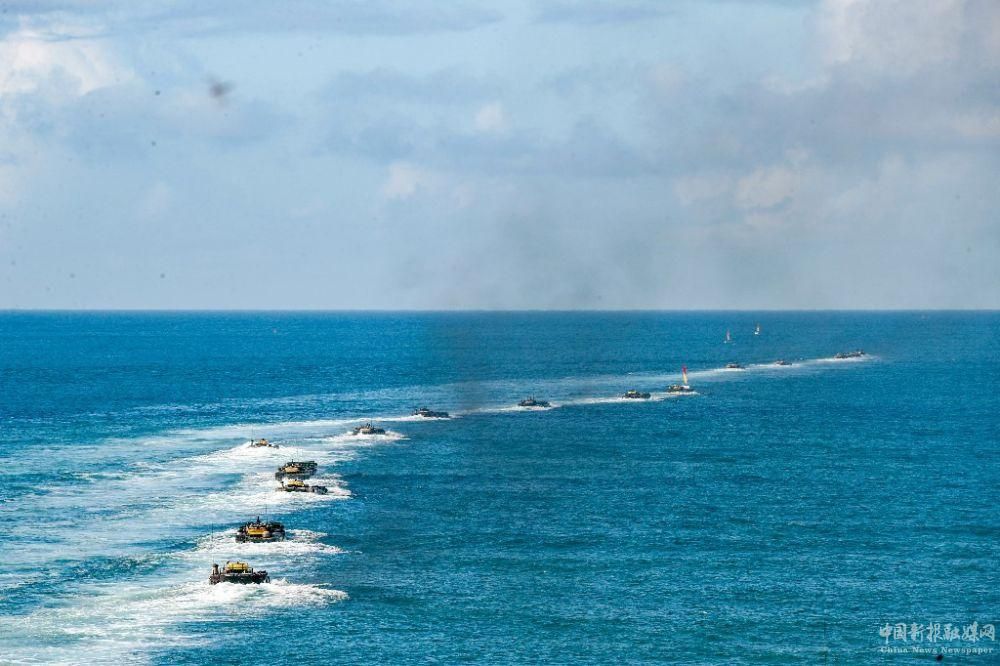 ↑第74集團(tuán)軍某旅“硬骨頭六連”官兵駕駛兩棲步戰(zhàn)車在海上進(jìn)行實(shí)戰(zhàn)化訓(xùn)練(2020年8月14日攝)。新華社發(fā)(李彬 攝)