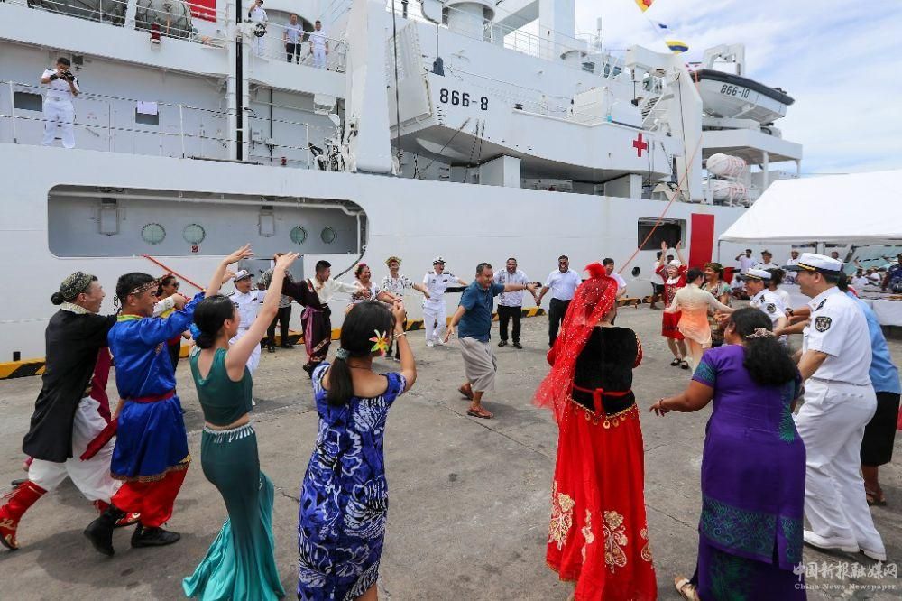 7月15日,基里巴斯首都塔拉瓦,碼頭上一片歡歌笑語(yǔ)。對(duì)于首次到訪的中國(guó)海軍“和平方舟”號(hào)醫(yī)院船,當(dāng)?shù)孛癖娪芍缘臍g迎與感激溢于言表。