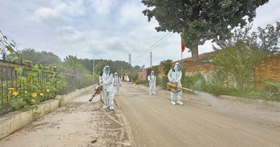 8月6日,河北省永清縣曹家務(wù)鄉(xiāng)張莊子村,工作人員在對洪水過后的街道進(jìn)行消毒。邵玉姿 龐趁友攝影報道