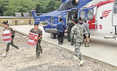 8月6日,黑龍江省應(yīng)急管理廳調(diào)派直升機(jī)向受災(zāi)地區(qū)運(yùn)送救援物資。劉溫馨 段紅偉攝影報道