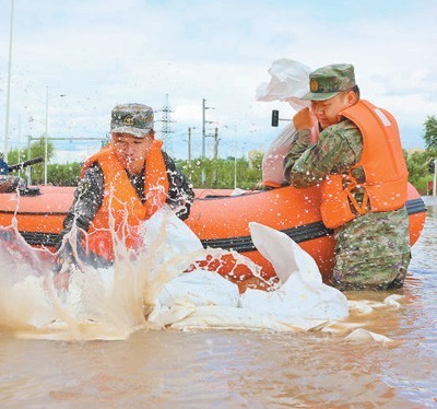 8月5日,黑龍江省哈爾濱市道外區(qū)人武部民兵應(yīng)急分隊在團(tuán)結(jié)鎮(zhèn)勤勞村展開救援。呂衍海攝(新華社發(fā))