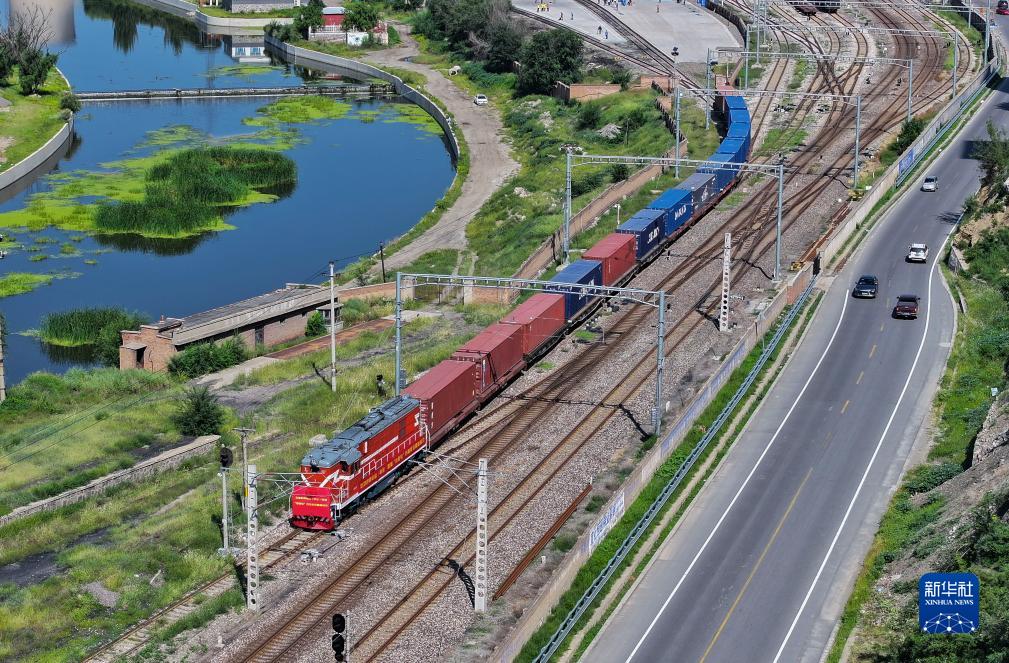 8月29日,首趟中歐(中亞)班列“京張?zhí)?rdquo;從張家口市下花園鐵路貨運中心場區(qū)啟程(無人機照片)。