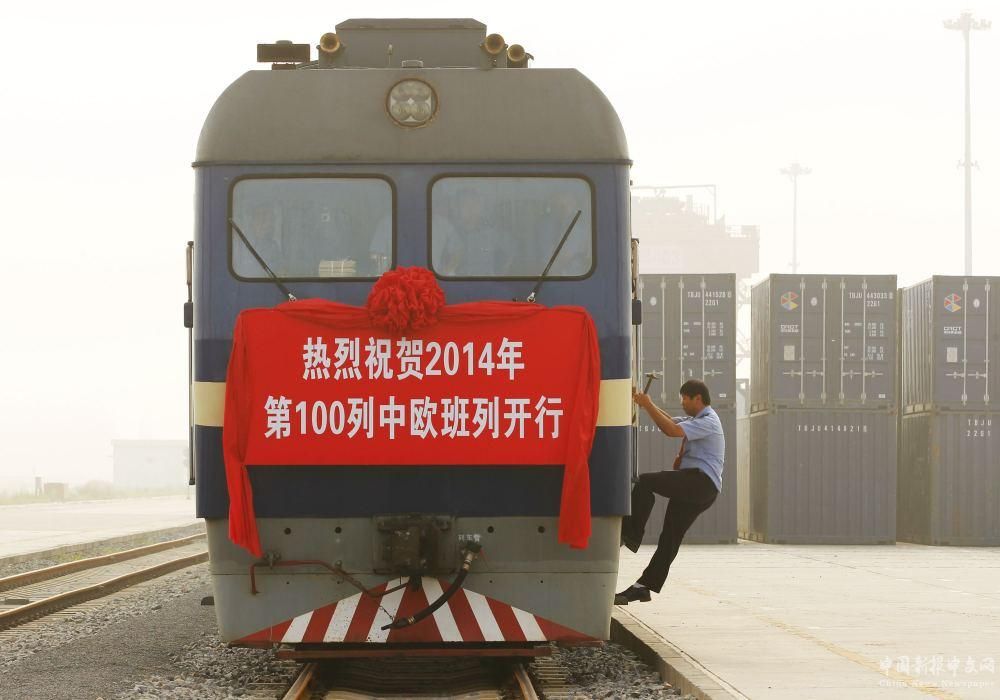2014年8月1日,2014年第100列中歐班列在鄭州圃田集裝箱中心站準(zhǔn)備出發(fā),前往德國漢堡。 新華社記者 邢廣利 攝