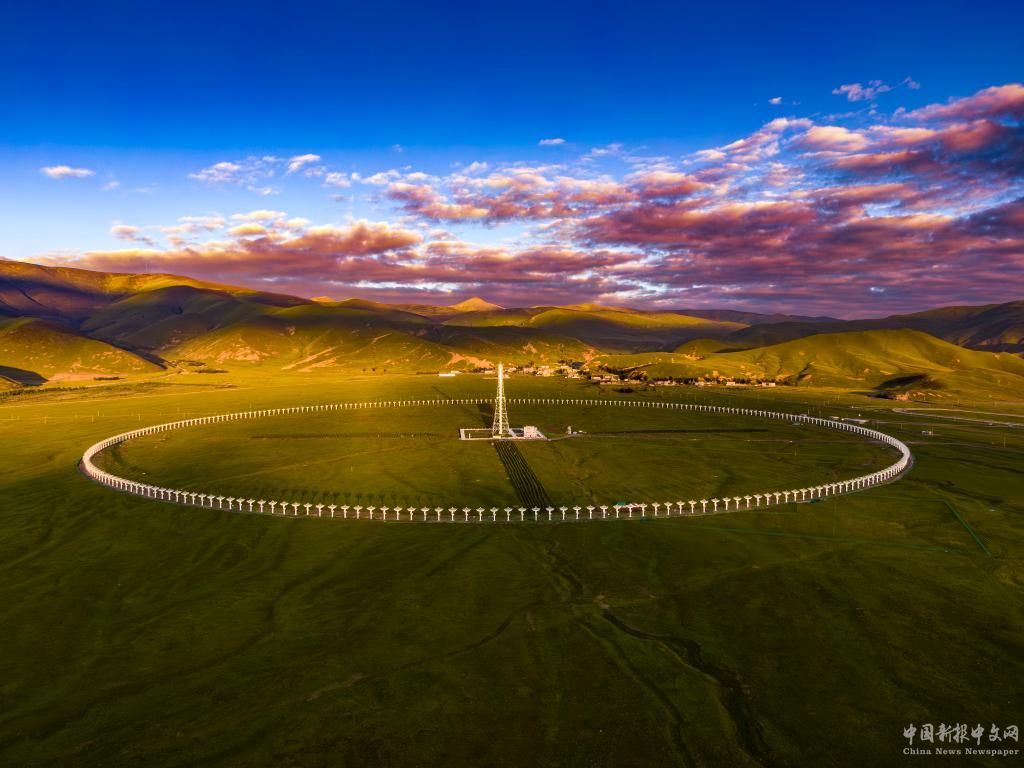 在四川省稻城縣一處海拔3820米的開闊地,313部直徑6米的拋物面天線均勻排布,圍成一個(gè)直徑1公里的大圓環(huán),遠(yuǎn)遠(yuǎn)望去宛如平放在高原上的一串珍珠,這就是圓環(huán)陣太陽射電成像望遠(yuǎn)鏡,它也被當(dāng)?shù)鼐用裥蜗蟮胤Q為“千眼天珠”。