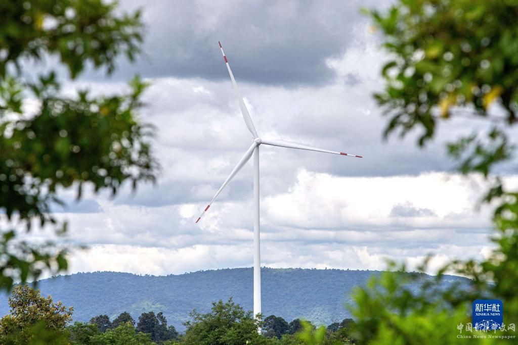 這是10月5日在泰國猜也蓬府拍攝的由中國金風(fēng)科技提供的風(fēng)力發(fā)電機(jī)。