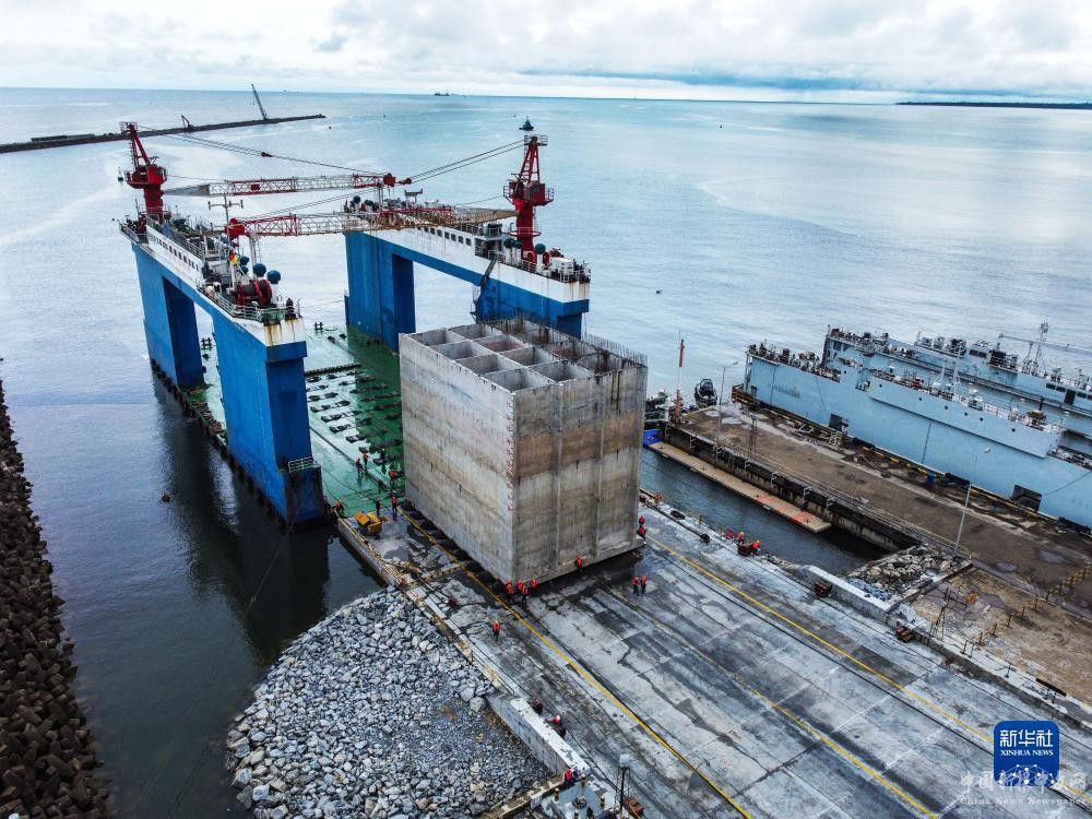 這是2022年10月22日在喀麥隆克里比拍攝的等待出運(yùn)安裝的沉箱(無(wú)人機(jī)照片)。新華社記者 羅毓 攝