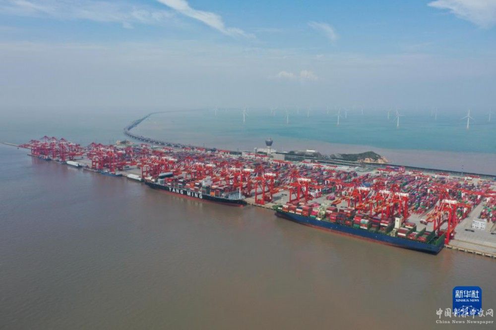 這是2022年9月23日拍攝的上海洋山港集裝箱碼頭(無(wú)人機(jī)照片)。新華社記者 丁汀 攝