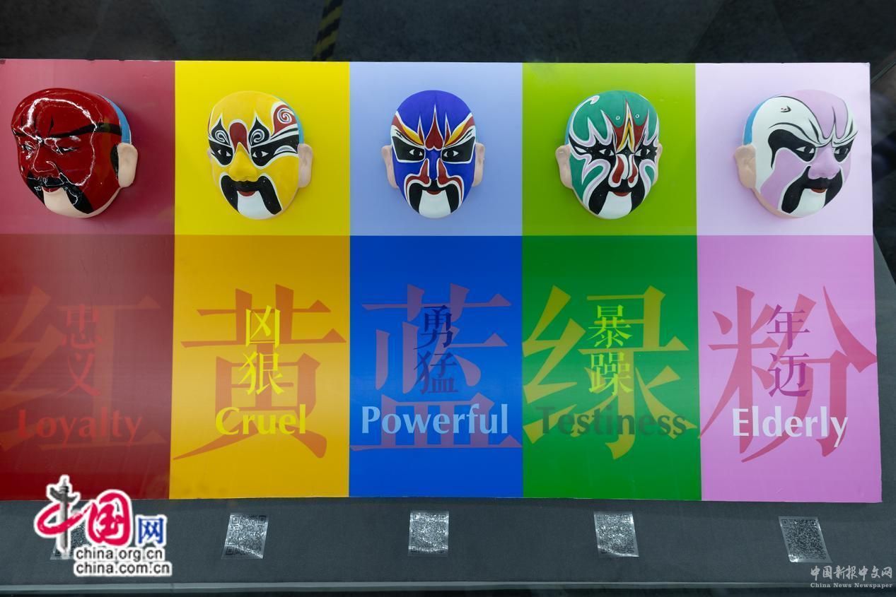 彩塑京劇臉譜,每個(gè)臉譜下都有專(zhuān)屬的二維碼。中外嘉賓可以通過(guò)各類(lèi)手機(jī),掃描二維碼了解更多作品信息。中國(guó)網(wǎng) 楊佳 攝影