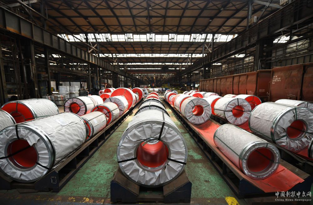 這是在河鋼集團(tuán)塞爾維亞斯梅戴雷沃鋼廠拍攝的成品鋼卷(2023年5月5日攝)。新華社記者 任鵬飛 攝