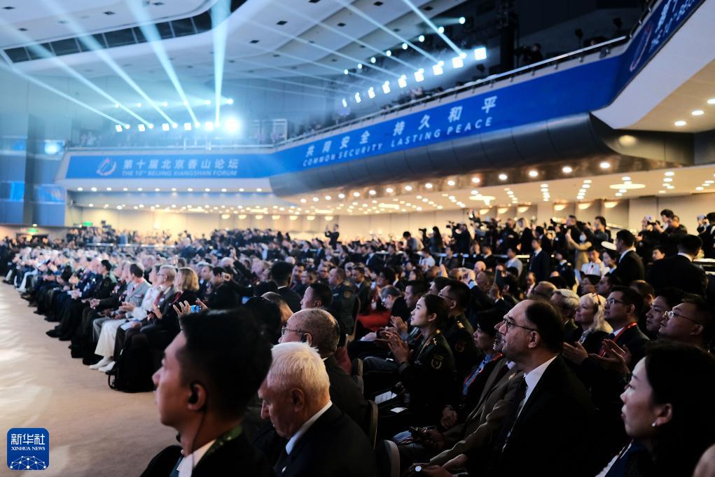 這是10月30日拍攝的開幕式現(xiàn)場。當(dāng)日,第十屆北京香山論壇在北京國際會議中心開幕。本屆論壇的主題是“共同安全、持久和平”。新華社記者 李杰 攝