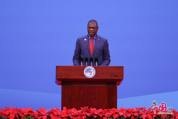 11月5日,第六屆中國國際進口博覽會暨虹橋國際經(jīng)濟論壇在上海市開幕。圖為南非副總統(tǒng)馬沙蒂萊致辭。中國網(wǎng)記者 董寧攝影
