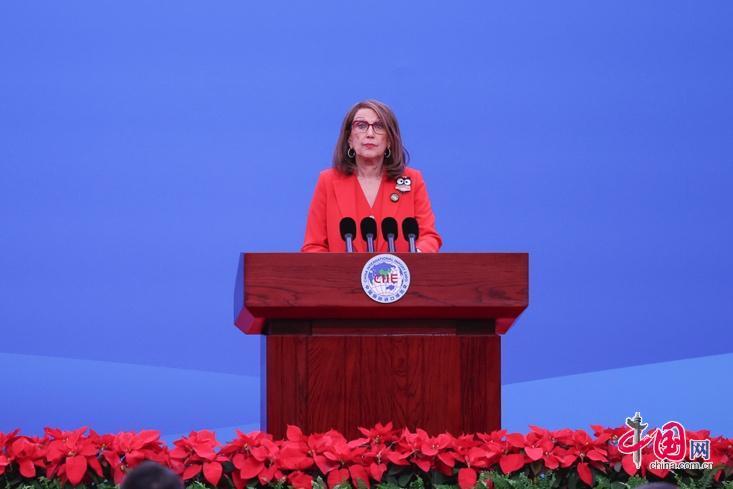 11月5日,第六屆中國國際進口博覽會暨虹橋國際經(jīng)濟論壇在上海市開幕。圖為聯(lián)合國貿(mào)易和發(fā)展會議秘書長格林斯潘致辭。中國網(wǎng)記者 董寧攝影