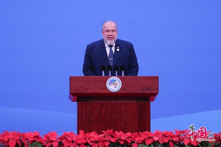11月5日,第六屆中國國際進口博覽會暨虹橋國際經(jīng)濟論壇在上海市開幕。圖為古巴總理馬雷羅致辭。中國網(wǎng)記者 董寧 攝影