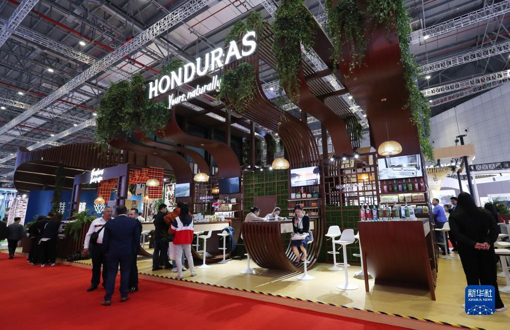 這是11月6日拍攝的第六屆進(jìn)博會國家展洪都拉斯展臺外景。