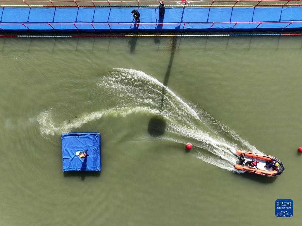 11月8日,消防員在南京玄武湖參加水域救援比賽(無(wú)人機(jī)照片)。
