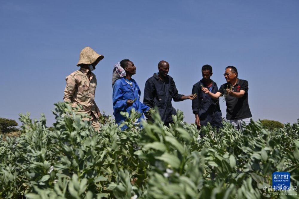 在位于厄立特里亞阿斯馬拉的農(nóng)業(yè)技術(shù)援助項目示范地,中國援厄第三期高級農(nóng)業(yè)專家組豆類作物專家劉運民(右一)與當(dāng)?shù)剞r(nóng)戶交流(2023年9月27日攝)。為推動厄立特里亞農(nóng)業(yè)產(chǎn)業(yè)發(fā)展,中國農(nóng)業(yè)農(nóng)村部已派出三批專家在厄立特里亞開展涉及豆類作物、果樹園藝、油料等領(lǐng)域的技術(shù)援助工作,成效顯著。新華社記者 韓旭 攝