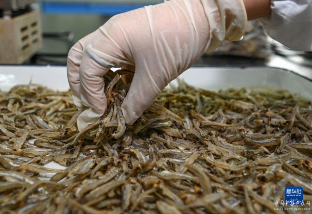 在湖南省岳陽市平江高新技術(shù)產(chǎn)業(yè)園,勁仔食品平江生產(chǎn)基地的化驗員在實驗室對進口鳀魚進行水分檢測(2023年6月28日攝)。今年6月,中國首次進口的肯尼亞野生鳀魚產(chǎn)品在第三屆中非經(jīng)貿(mào)博覽會上亮相。近年來,非洲對華農(nóng)產(chǎn)品出口增長迅速,中國目前已經(jīng)成為非洲農(nóng)產(chǎn)品出口第二大目的地國。新華社記者 陳曄華 攝