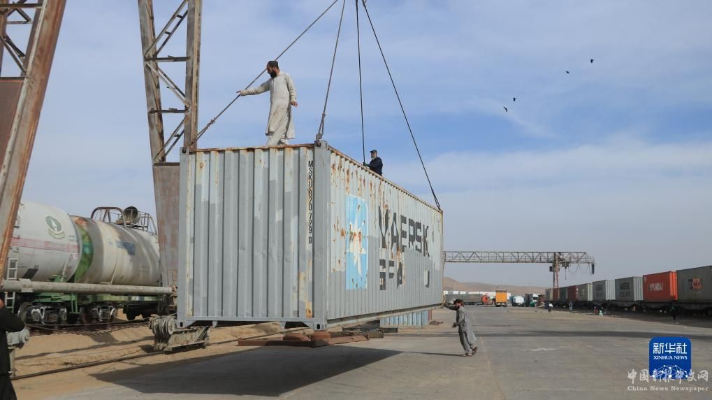 11月16日,在阿富汗西北部赫拉特省托爾貢迪口岸,工作人員卸載中國援阿抗震救災(zāi)物資。
