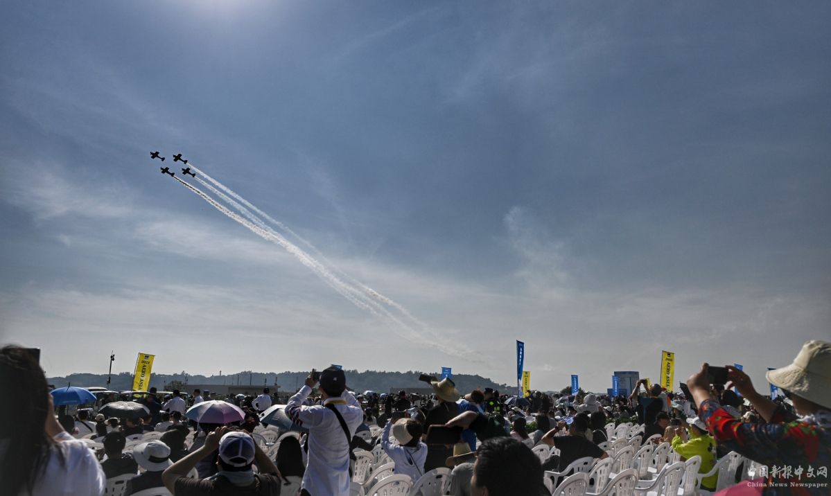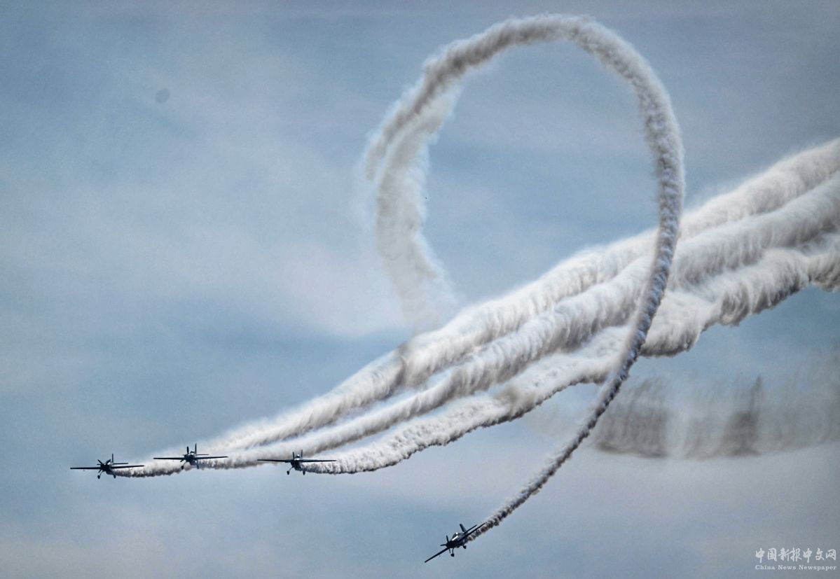 中國(guó)湖南“山河”飛行表演隊(duì)為在場(chǎng)觀眾帶來(lái)精彩飛行表演。尹鋼 攝